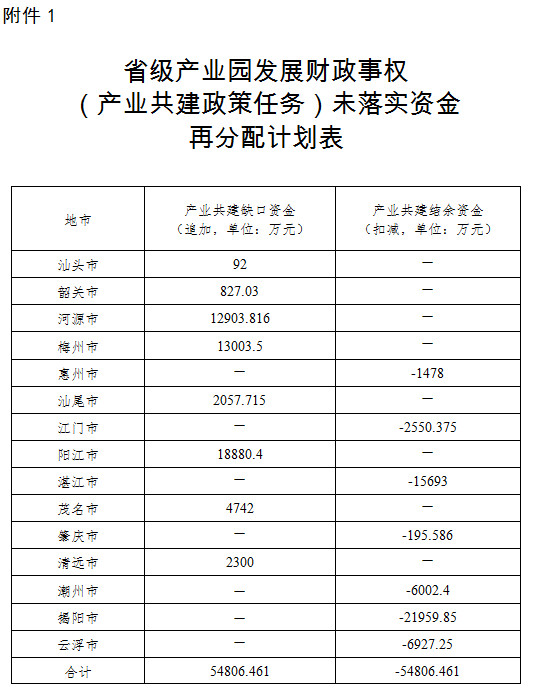 1.省級產業園發展財政事權(產業共建政策任務)未落實資金再分配計劃表