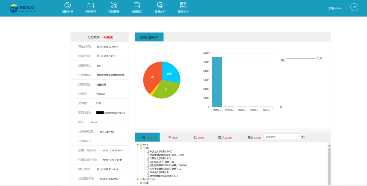 針對系統(tǒng)開發(fā)過程中的編碼階段、測試階段、交付驗收階段、對各階段系統(tǒng)源代碼進行安全審計檢測,利用數(shù)據(jù)流分析引擎、語義分析引擎、控制流分析引擎等技術,采用專業(yè)的源代碼安全審計工具對源代碼安全問題進行分析和檢測并驗證,從而對源代碼安全漏洞進行定級,給出安全漏洞分析報告等,幫助軟件開發(fā)的管理人員統(tǒng)計和分析當前階段軟件安全的風險、趨勢,跟蹤和定位軟件安全漏洞,提供軟件安全質量方面的真實狀態(tài)信息。